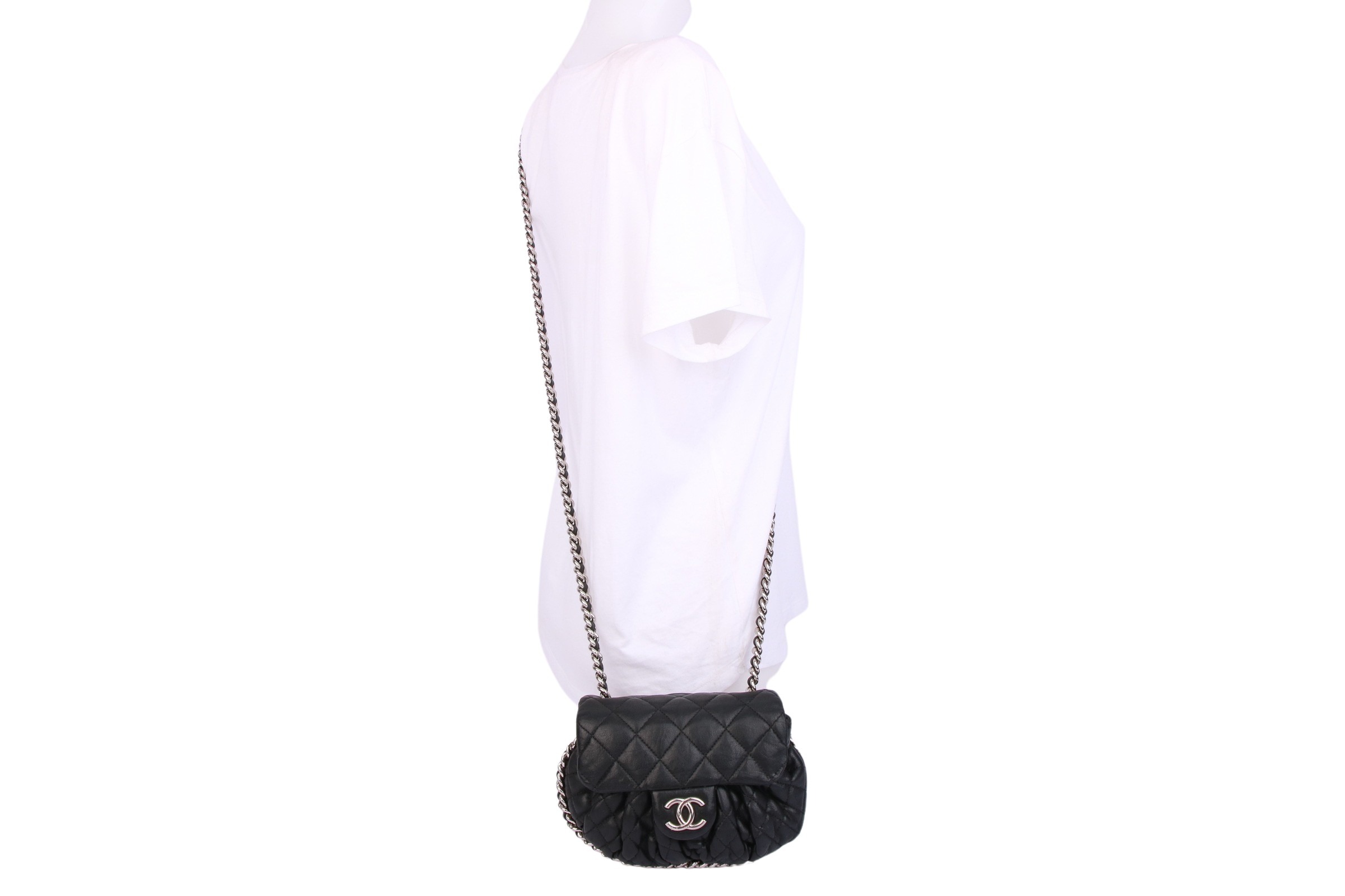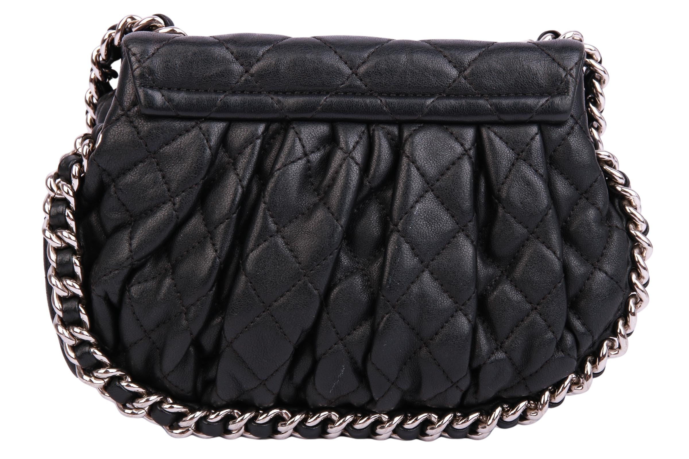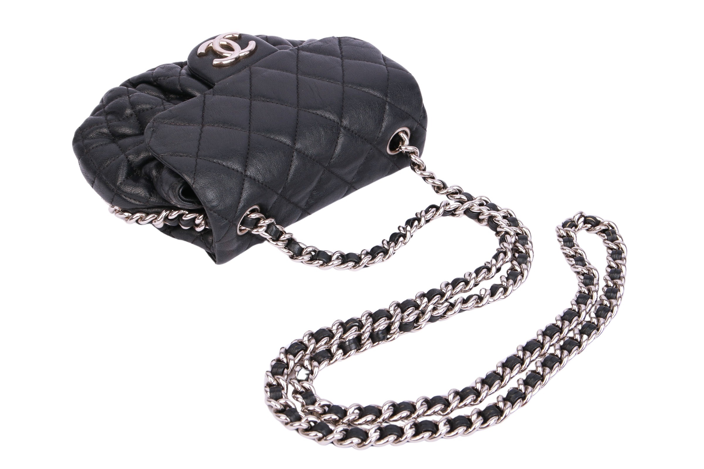 Kleine Umhängetasche aus dem Hause Chanel mit silberfarbenen Metallbeschlägen. Die Chanel Tasche ist ein Synonym für zeitlose Eleganz und unvergleichlichen Luxus. Als eines der bekanntesten und begehrtesten Modeaccessoires weltweit verkörpert sie die perfekte Symbiose aus raffiniertem Design, hochwertiger Handwerkskunst und erlesenen Materialien.