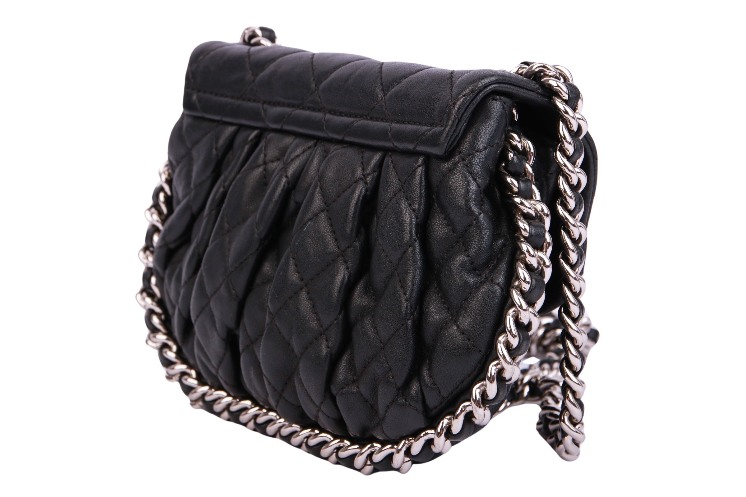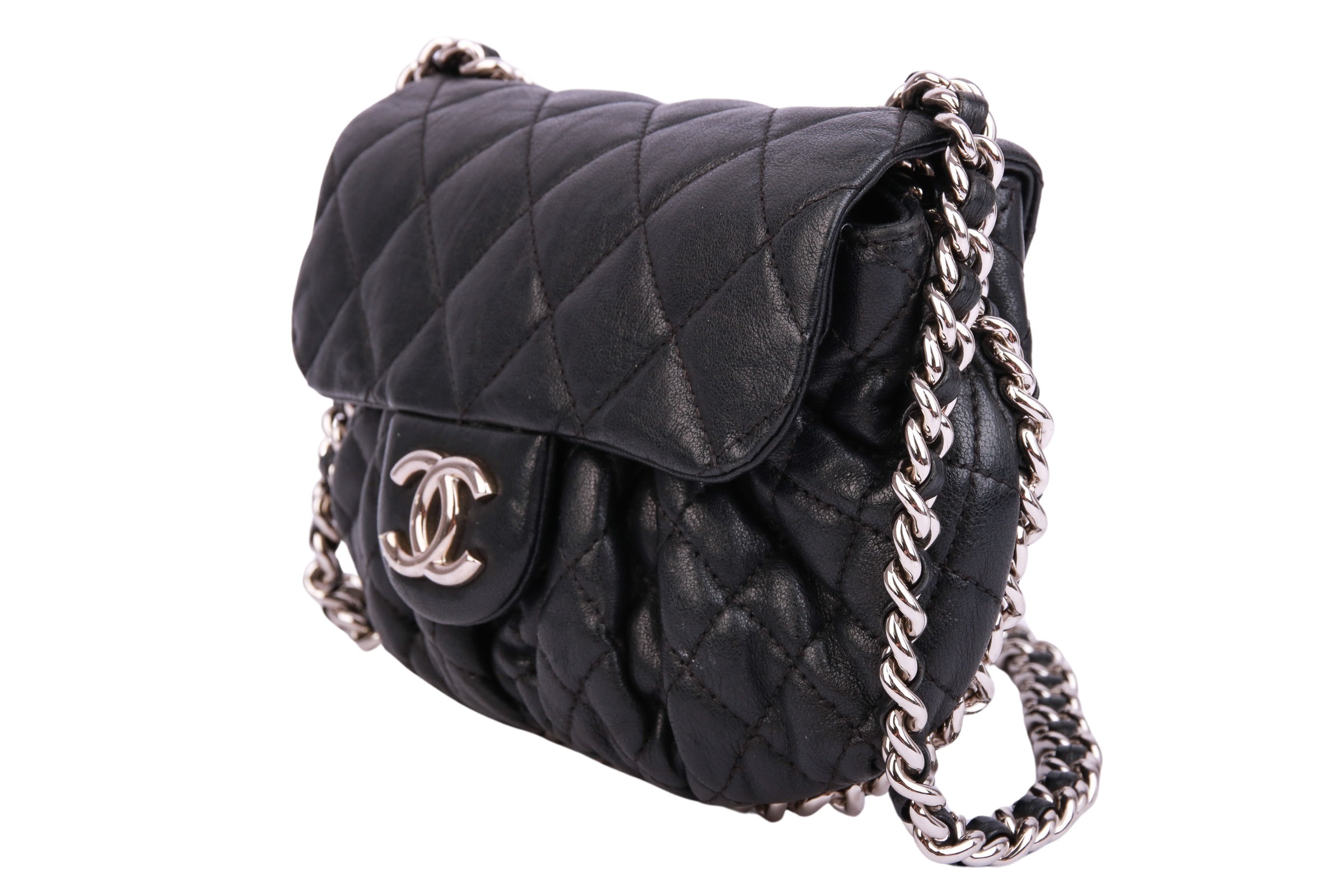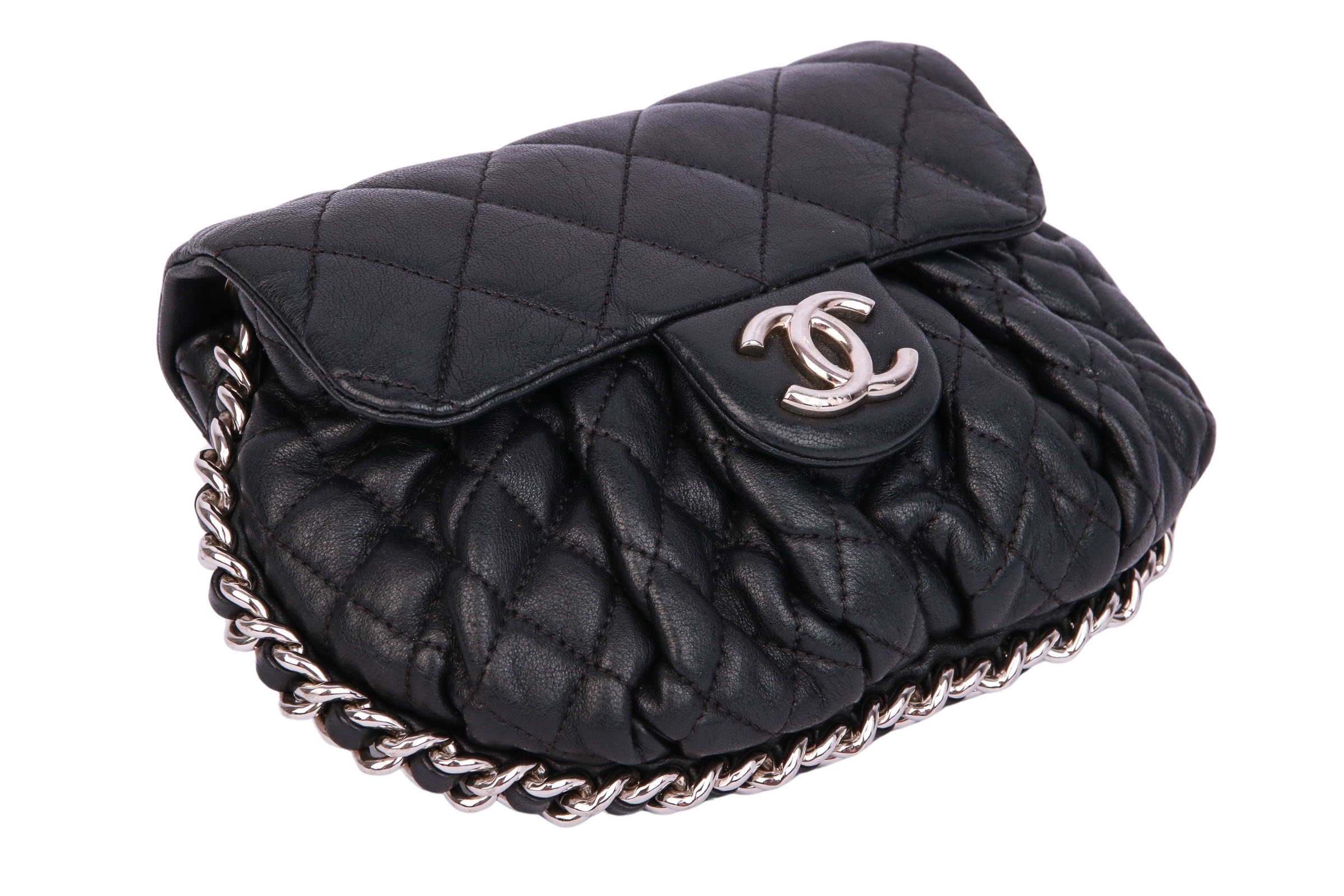 Kleine Umhängetasche aus dem Hause Chanel mit silberfarbenen Metallbeschlägen. Die Chanel Tasche ist ein Synonym für zeitlose Eleganz und unvergleichlichen Luxus. Als eines der bekanntesten und begehrtesten Modeaccessoires weltweit verkörpert sie die perfekte Symbiose aus raffiniertem Design, hochwertiger Handwerkskunst und erlesenen Materialien.