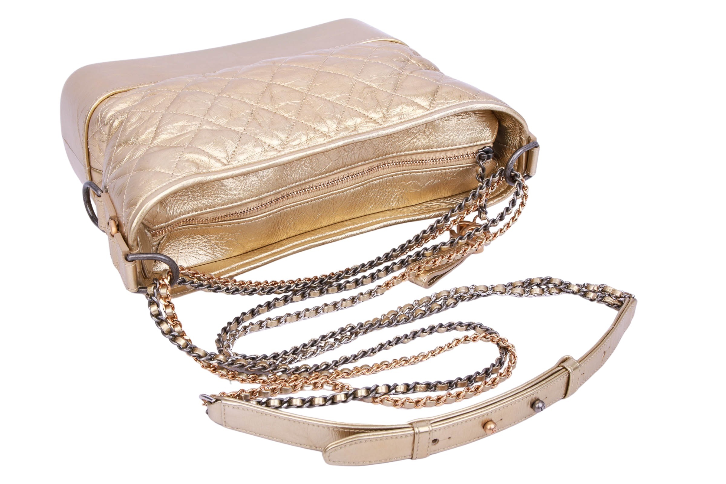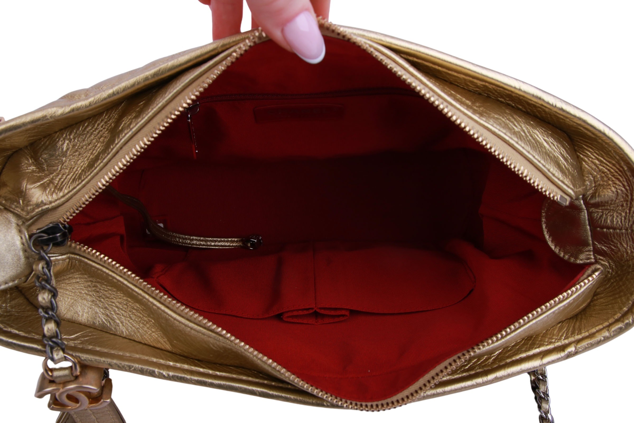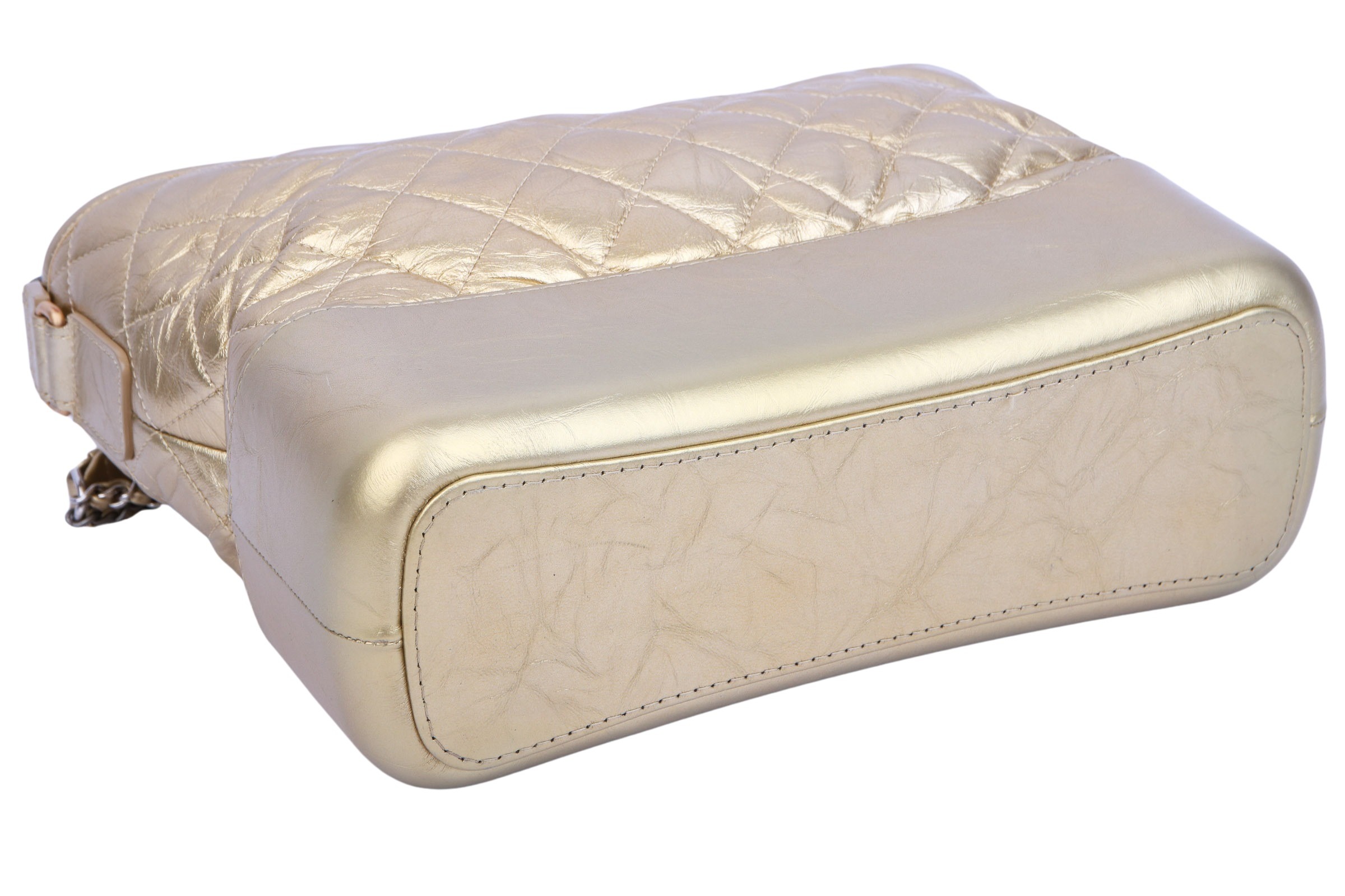 Erleben Sie luxuriöse Eleganz mit der Chanel Gabrielle Small Quilted Leder Tasche in strahlendem Gold. Diese atemberaubende Tasche vereint zeitloses Design und exklusive Handwerkskunst, veredelt mit dem ikonischen, gesteppten Leder und dem unverwechselbaren CC-Logo. Ideal für besondere Anlässe und stilvolle Alltagsmomente, verleiht die Chanel Gabrielle Ihrem Outfit einen Hauch von Glamour und Raffinesse. Gönnen Sie sich ein Stück echter Pariser Haute Couture – mit der Chanel Gabrielle.