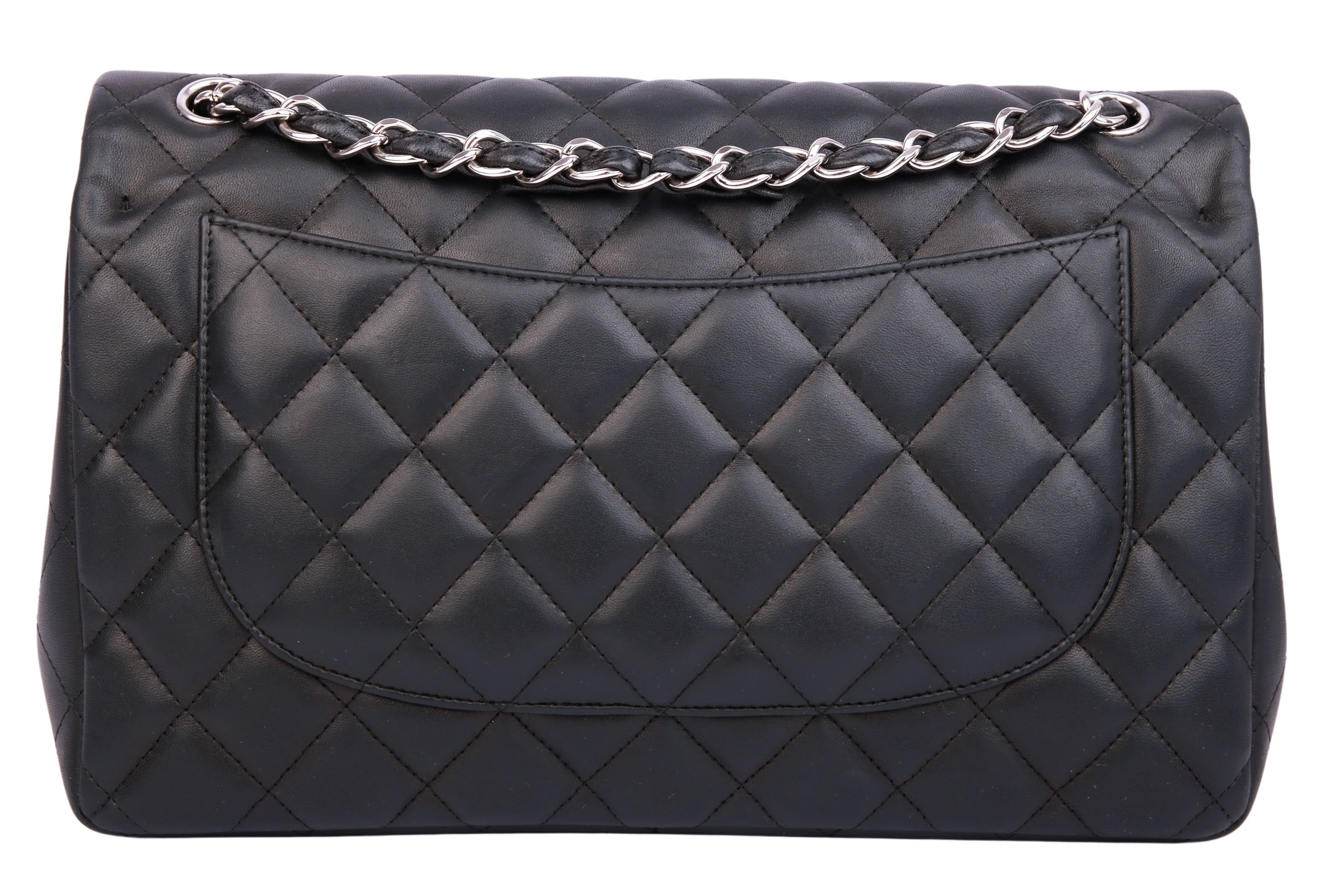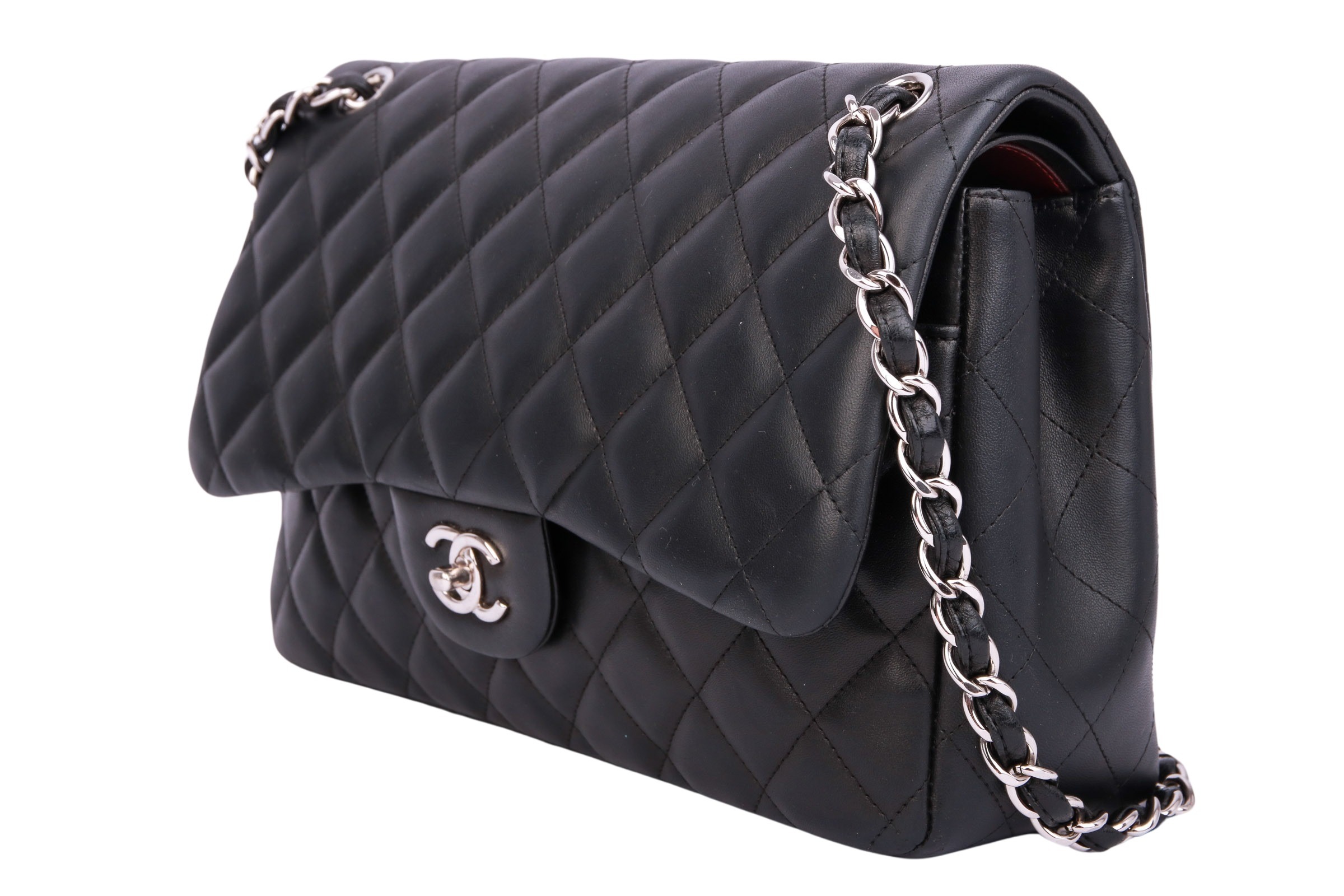 Erleben Sie zeitlose Eleganz mit der Chanel Doppel Flap Bag in klassischem Schwarz, Größe Jumbo. Diese ikonische Tasche, gefertigt aus luxuriösem Leder und verziert mit dem legendären CC-Logo, bietet nicht nur geräumigen Platz, sondern auch unvergleichlichen Stil. Perfekt für jeden Anlass – ob tagsüber im Büro oder abends auf der Gala – die Chanel Doppel Flap Bag ist das ultimative Statement-Piece, das Ihrem Outfit einen Hauch von Raffinesse und Klasse verleiht. Investieren Sie in ein Stück Modegeschichte und genießen Sie den Glamour, den nur Chanel bieten kann.
