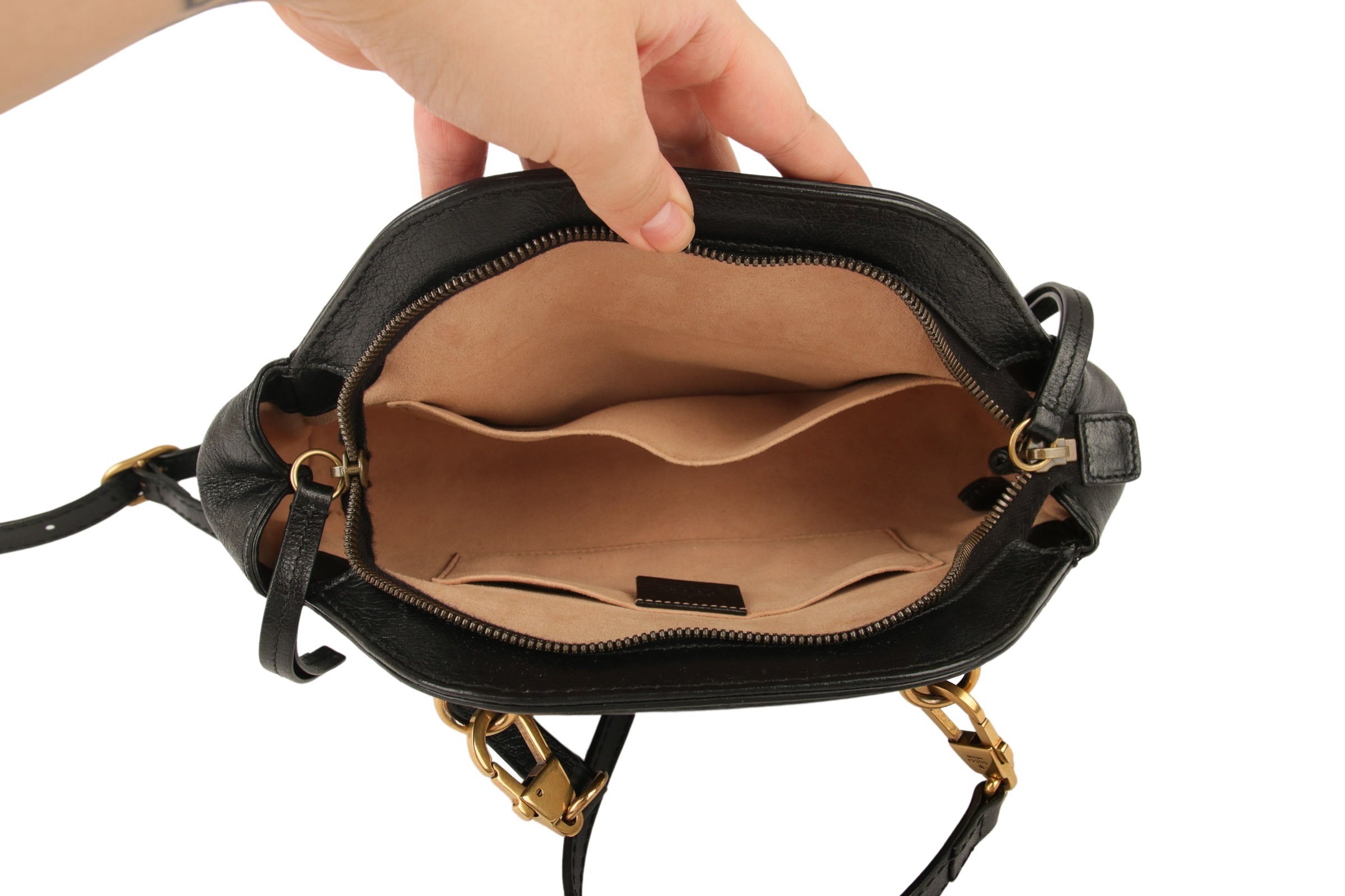 Gucci ist Kult: Auch fernab der Modebranche ist Gucci für jeden ein Begriff. 1921 in Florenz gegründet, begann der Aufstieg von Guccio Gucci zur Weltmarke. Zunächst wurden kleine Brötchen gebacken: Guccio Gucci widmete sich der Herstellung von Lederwaren und Gepäck. Große Gucci Handtaschen und Koffer für die Reise zählten zum Sortiment. Weil die Ressourcen im Jahr 1947 für Gucci langsam knapp wurden, designte er mit den verbliebenen Materialien eine der noch heute für Gucci typischen Gucci Handtaschen. Die Gucci Bamboo Bag war geboren - mehr zufällig - und trug unerwartet zum Erfolg von Gucci im Taschengeschäft bei.