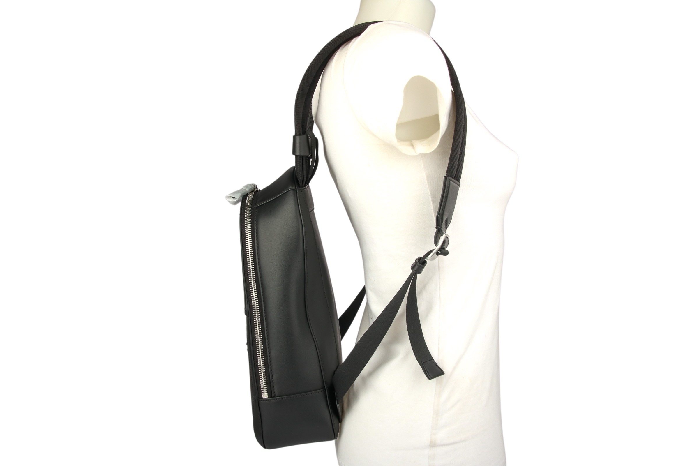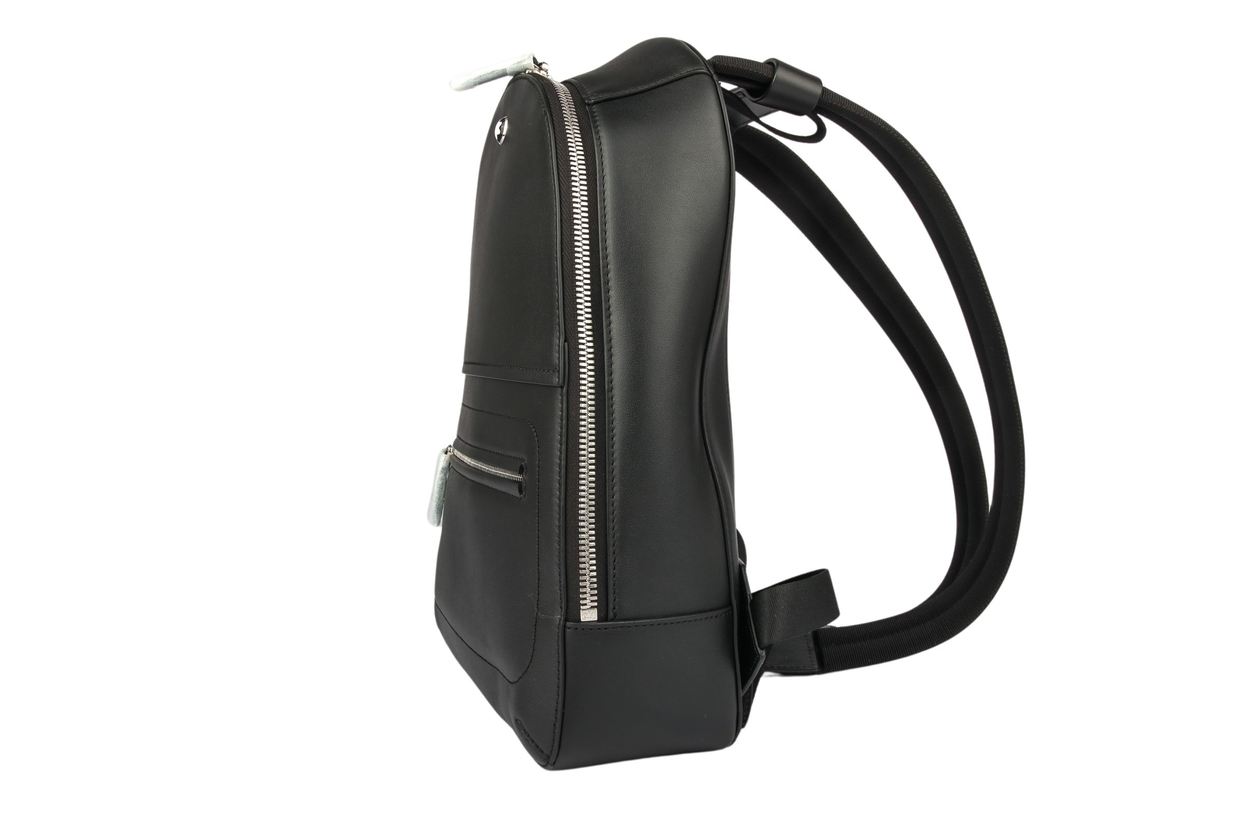 Sportlich-schicker kleiner Rucksack aus schwarzem Leder, ein Understatement von Montblanc.