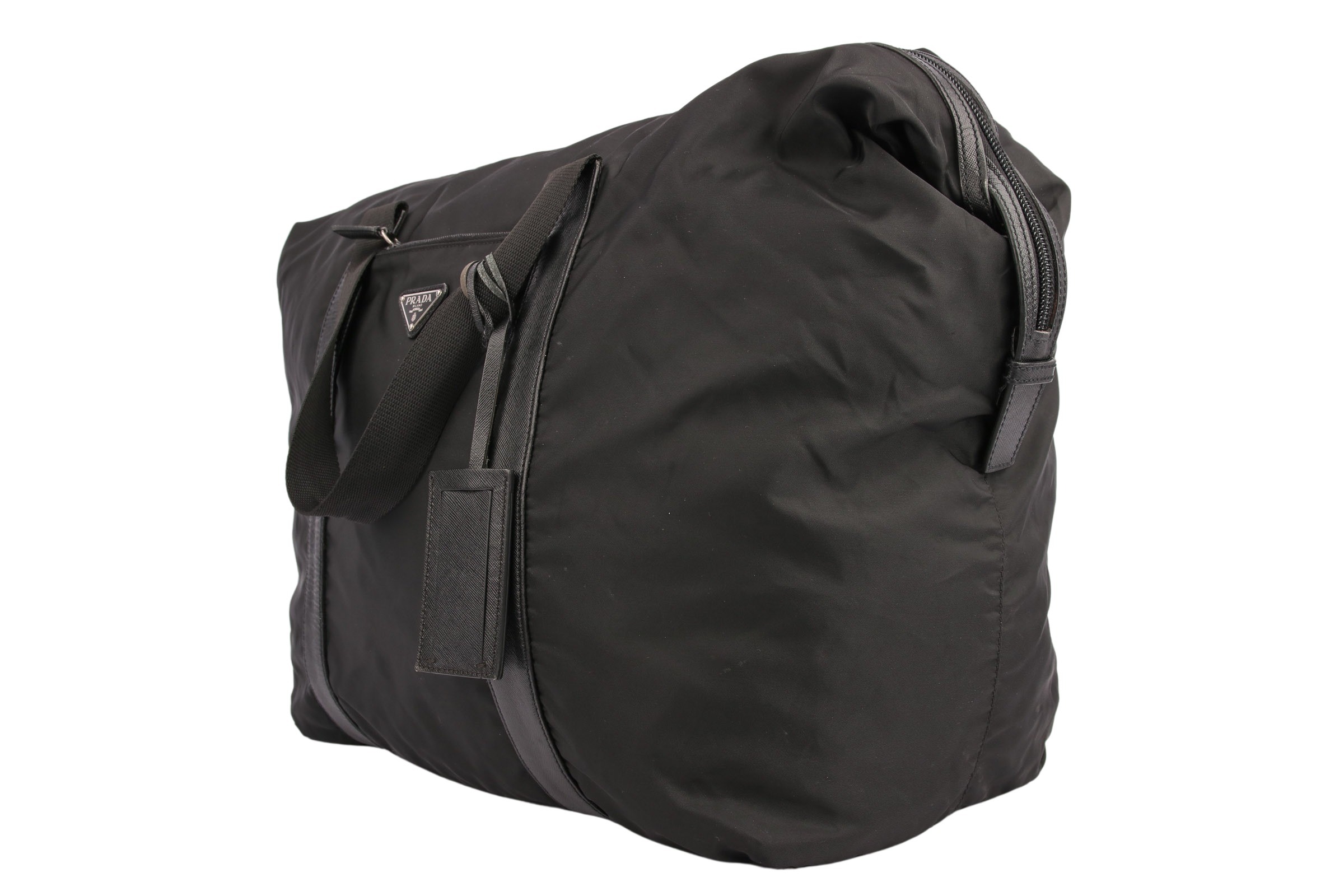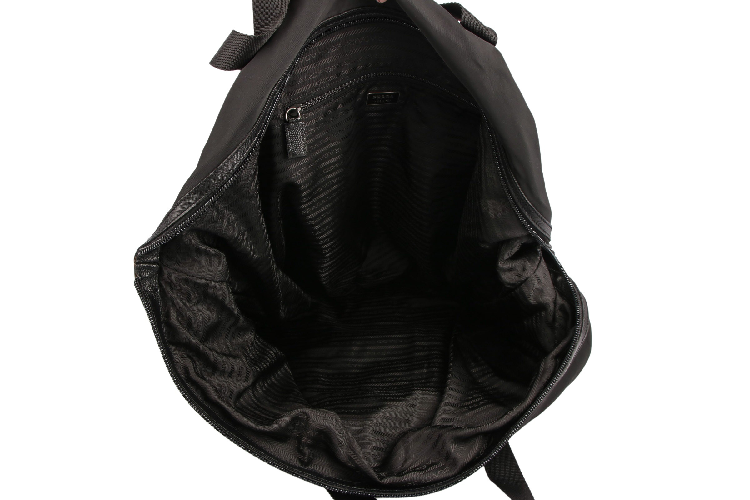 Es begann mit dem Modell "Vela", das sich erstmals bei Prada in dem markanten Nylonmaterial präsentierte. Als Hingucker wurde ein silberfarbenes, auf dem Kopf stehendes Dreieck verwendet. Neben dem markanten Schriftzug von Prada fungiert das umgekehrte Dreieck noch heute auf zahlreichen Produkten als Logo der Marke. Doch niemand rechnete mit dem großen Erfolg des hochpreisigen Rucksacks in dezentem Schwarz und robustem Material: Er entwickelte sich rasch zum Prestige-Objekt und sorgte dafür, dass Prada weitere Produkte aus Nylonmaterial fertigte. Dazu gehörten neben Prada-Handtaschen auch Geldbeutel und große Reisetaschen.